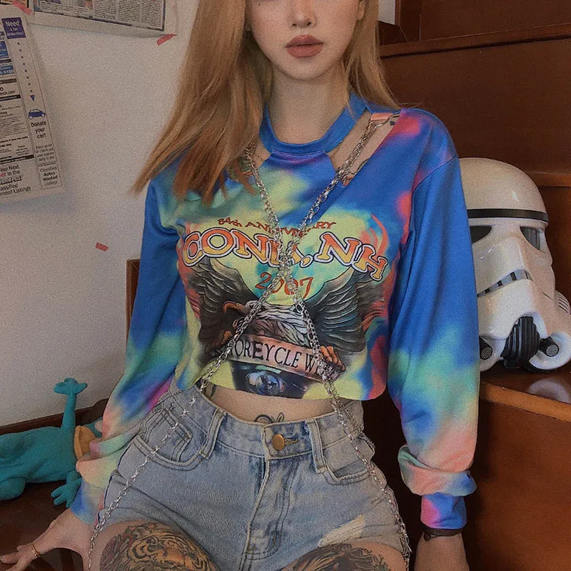 REVIEW TOP SELLER Lust Tees Female Autumn New Round Neck Fashion Print Beautiful Wild Material Comfortable Breathable